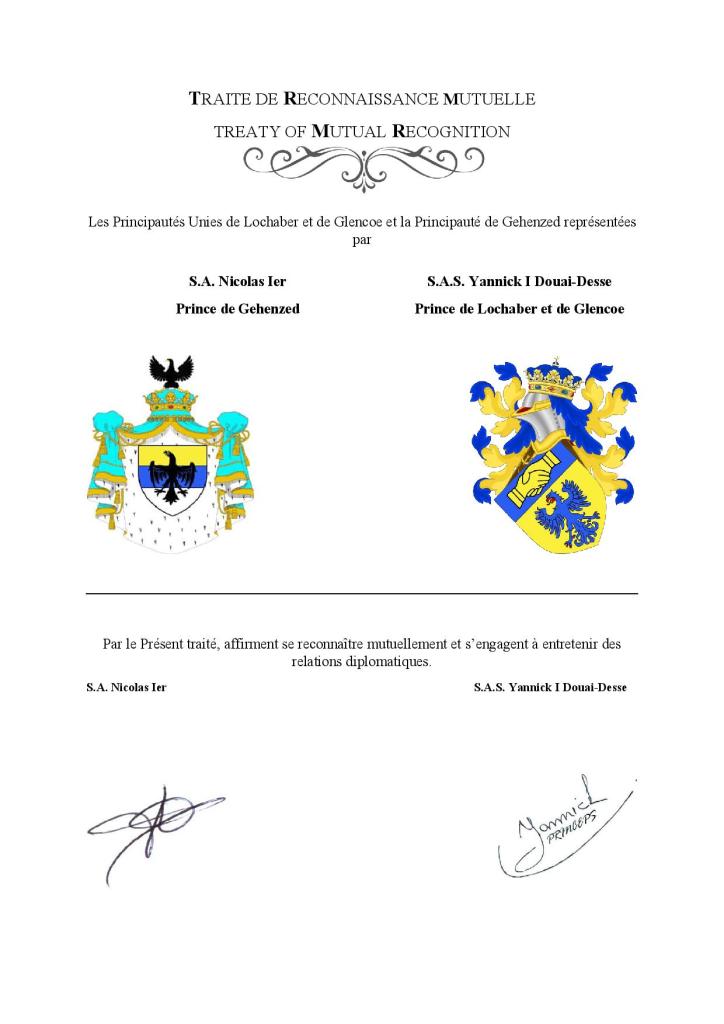 Reconnaissance mutuelle avec les Principautés Unies de Lochaber et Glencoe.