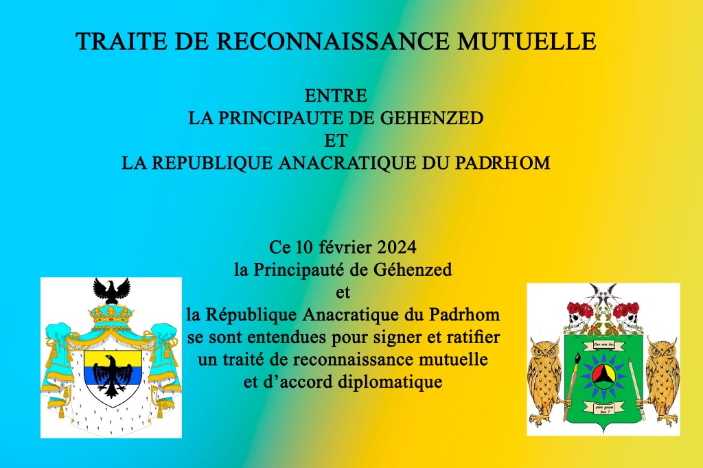 Reconnaissance mutuelle entre la Principauté de Géhenzed et la République Anacratique du Padrhom